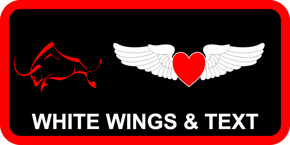 Los Llanos AB, Spain  1 CTS Spouses Name Tag - Black Background, Red Border, White Sweetheart Wings & Text, Red Bull Logo