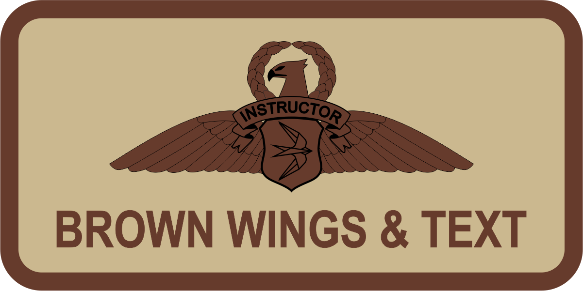 CASS Metrea Aero Instructor Name Tag - Desert Background, Brown Border,  Brown CASS Metrea Aero Instructor Wings & Text