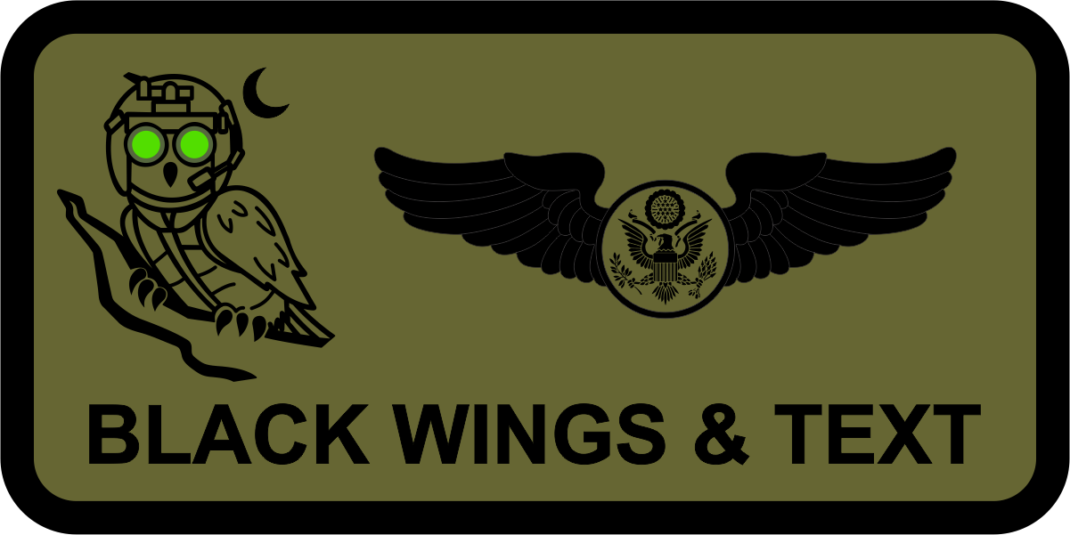 Pennsylvania ANG 193 SOS Owl OD Green Large Name Tag - OD Green Background, Black Border, Black Wings & Text, with OWL Logo, 2" x 4"