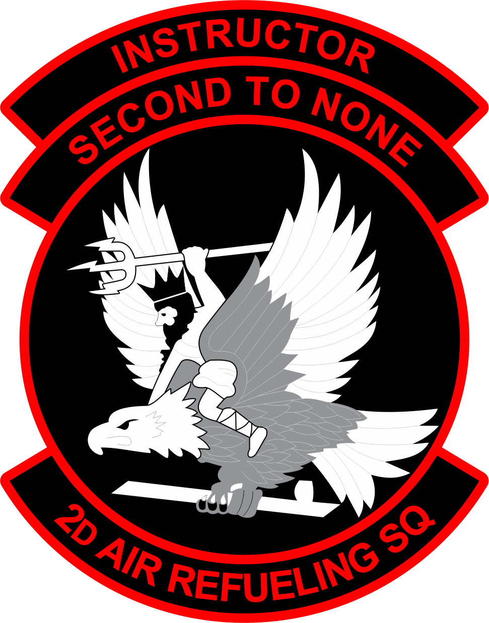McGuire AFB 2D Air Refueling Sq Black Background, Red Border, White/Black Neptune Riding an Eagle Carrying a Trident, Second To None, INSTRUCTOR, Full Color Patch 4"