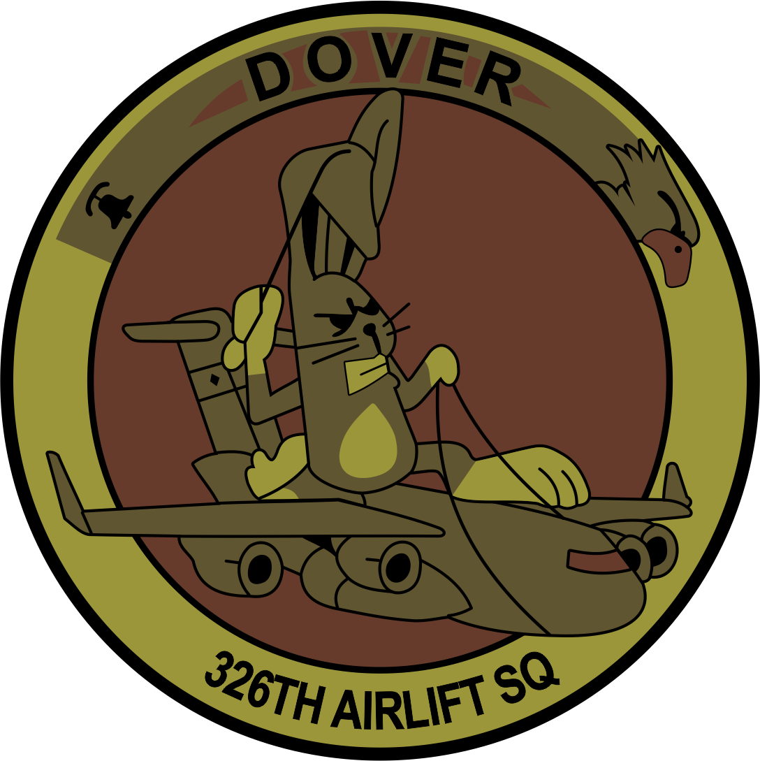 Dover 326TH Airlift Sq Flying Bunny on C-17 Aircraft, Brown Background, Black Border, Olive Drab C-17 & Bunny,  OCP Patch 3.5"