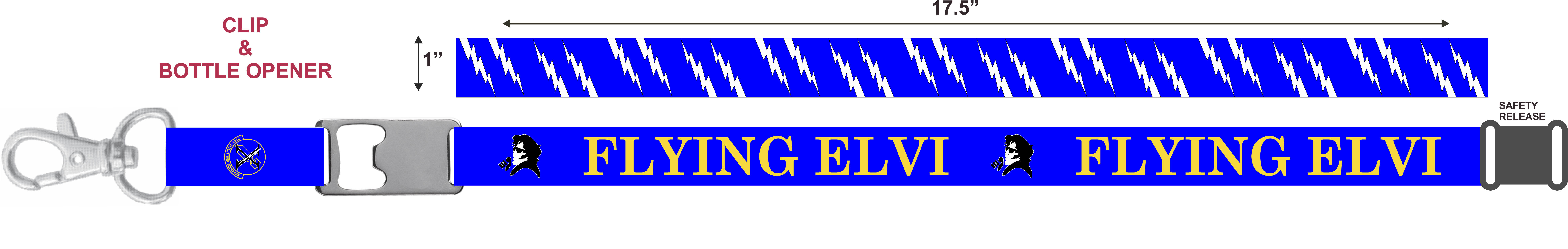 Edwards AFB 370 FLTS - Blue Background, White Bolts, Yellow Text Flying Elvi, with Patch, Bottle Opener, Safety Release - Lanyard