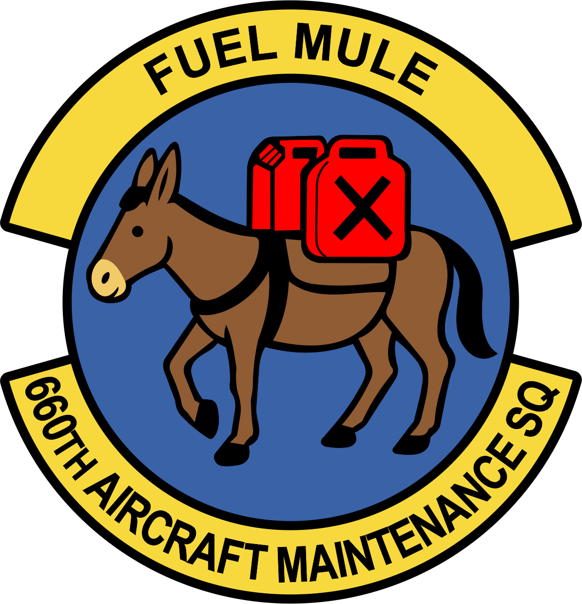 Travis AFB 660 AMXS Blue Background, Black Border, Donkey with Fuel Tanks, Fuel Mule Patch 4"