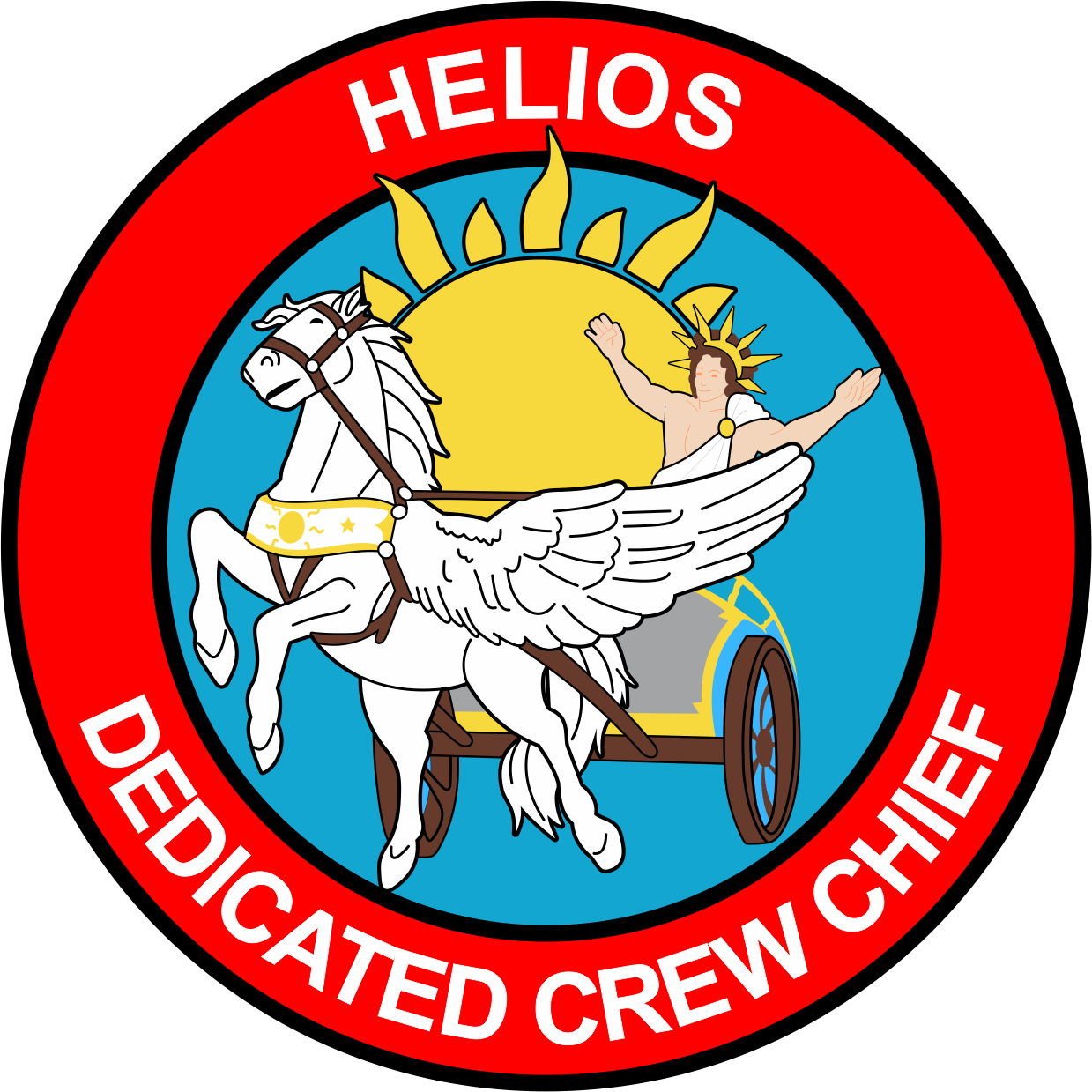 Travis AFB 660 AMXS Light Blue Background, Black Border, Yellow Sun, White Pagasus, Helios Dedicated Crew Chief, Patch 4"