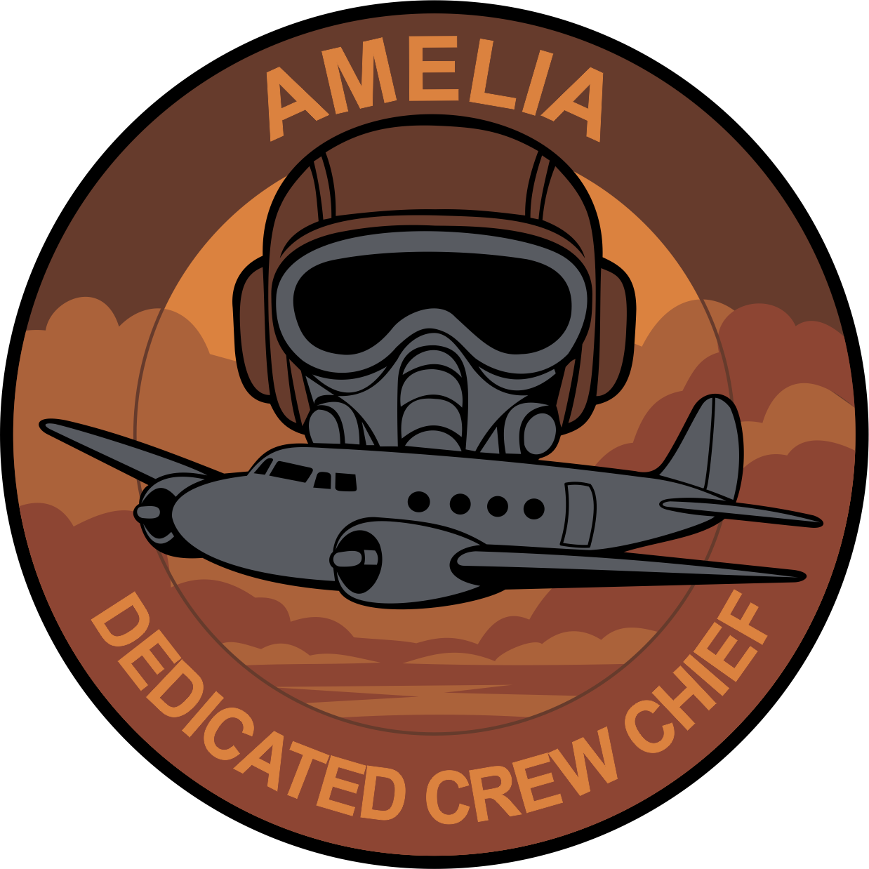 Travis AFB 660 AMXS Brown/Rust Background, Black Border, Amelia Dedicated Crew Chief, Gray Aircraft with Helmet, Patch 4"