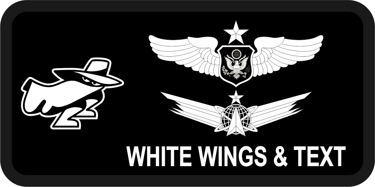 Boeing Phantom Name Tag- Black Background, Black Border, White Wings & Text, Black/White Phantom Logo