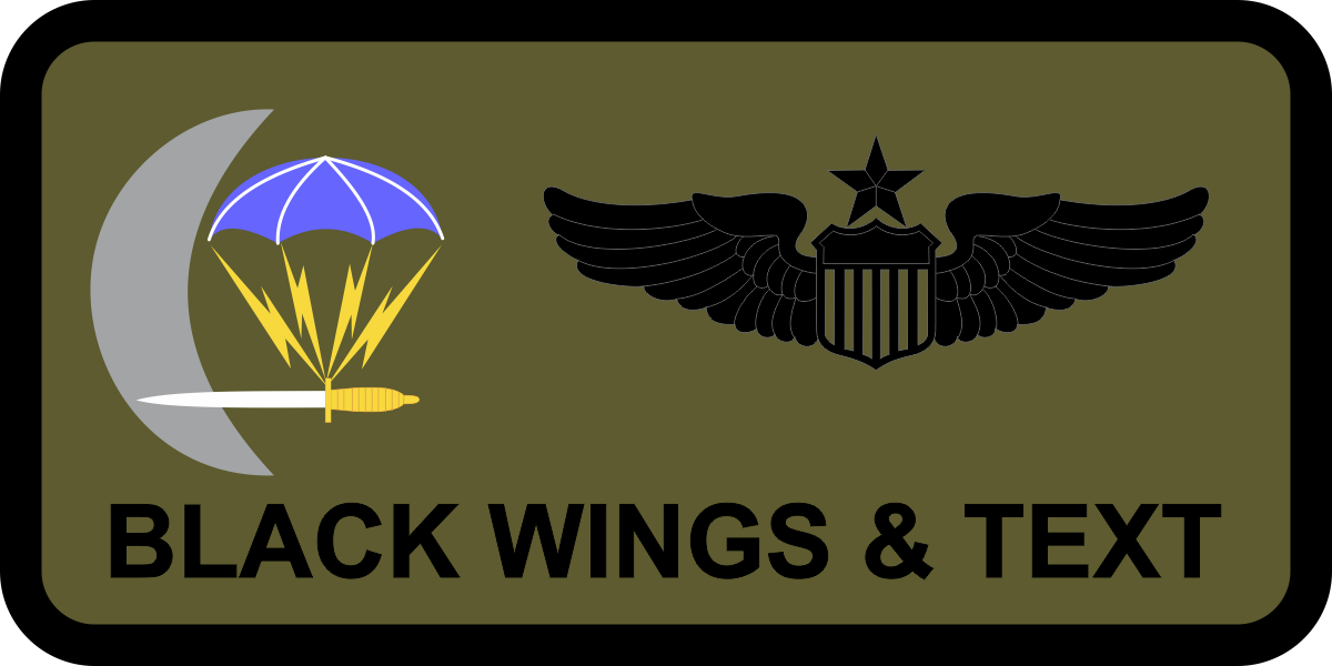 Duke Field AFB 919 SOSS- Name Tag Subdued Green Background with Black Border, Black Wings and Text with a Gray Moon, Purple/Yellow Parachute, White/Yellow Sword