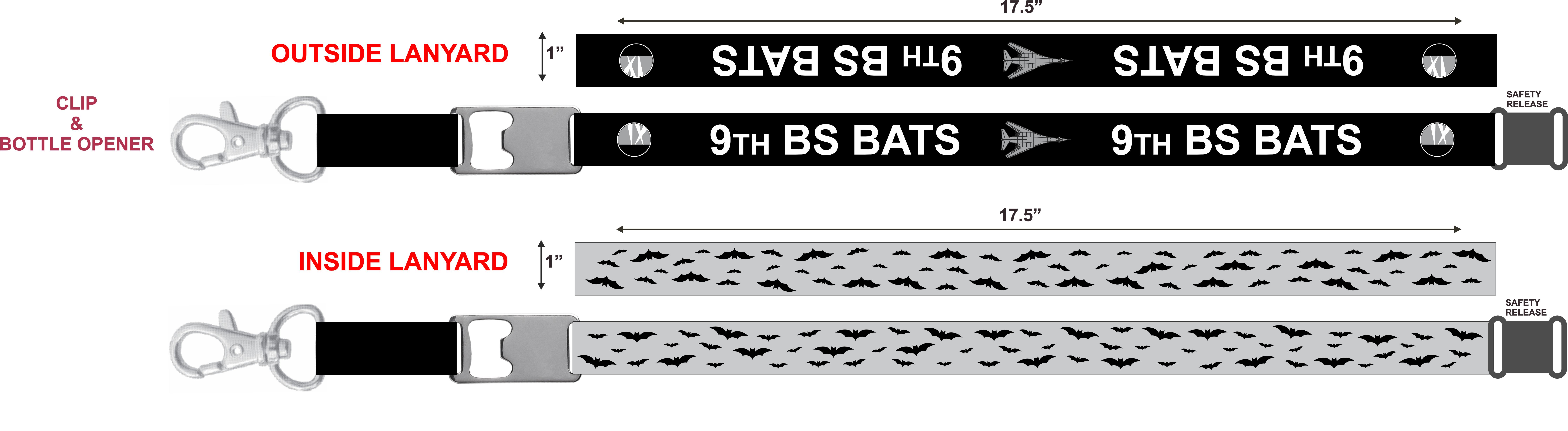 Dyess AFB 9th Bomb Squadron Bats with B-1b, Patch, Bats - One Side Black, One Side Gray, Safety Release, Bottle Opener Lanyard