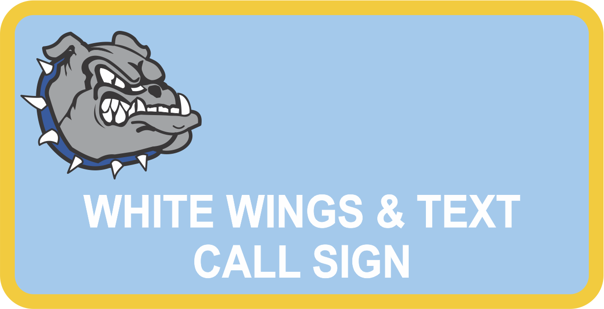 AFJROTC 20021 Burns High School Name Tag - Light Blue Background, AF Blue Border, Gray, Blue & White Bulldog Logo, White Wing & Text