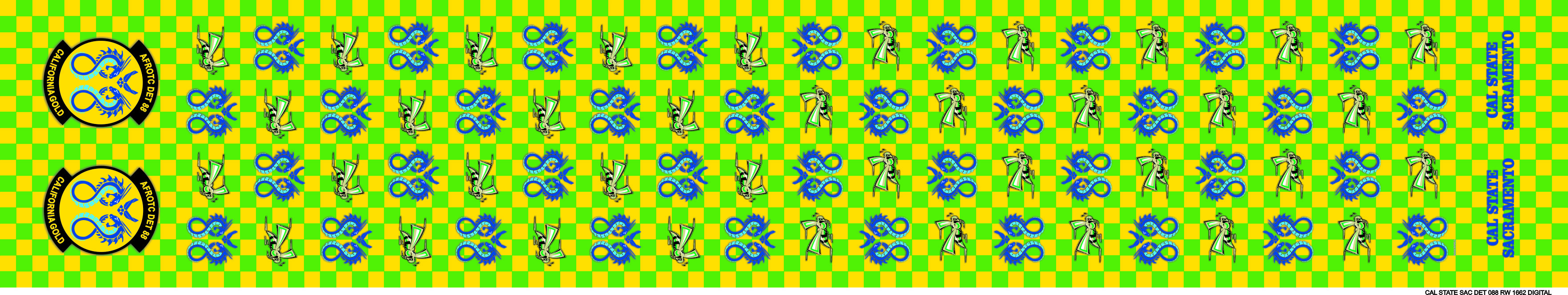 Cal State Sacramento AFROTC Det 088 Flight Scarf 4" x 48" - Green and Yellow Checkerboard, Snake Logo, Hornet Logo