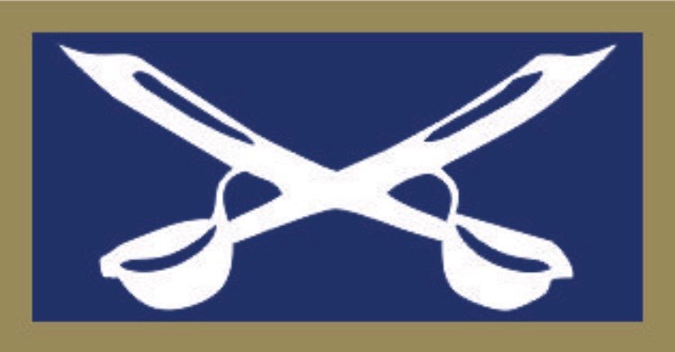 Charleston Southern University Sword Logo Pocket Tab 2" - Blue Background White Sword, Yellow Border