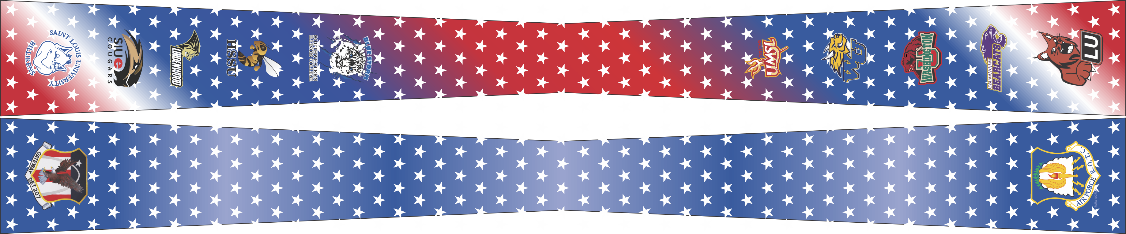 St Louis University AFROTC Det 207 Flight Scarf - Red, White & Blue Background, White Stars, Logos, Tapered