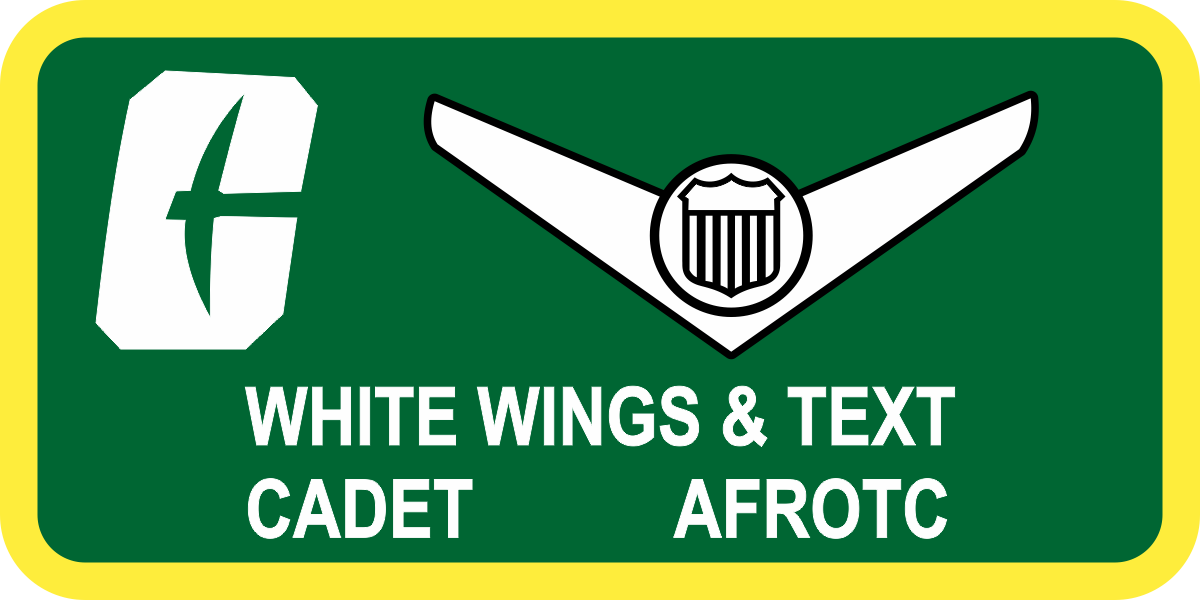 University of North Carolina Charlotte AFROTC Det 592 Name Tag - Green Background, Yellow Border, White Wing & Text, With School Logo