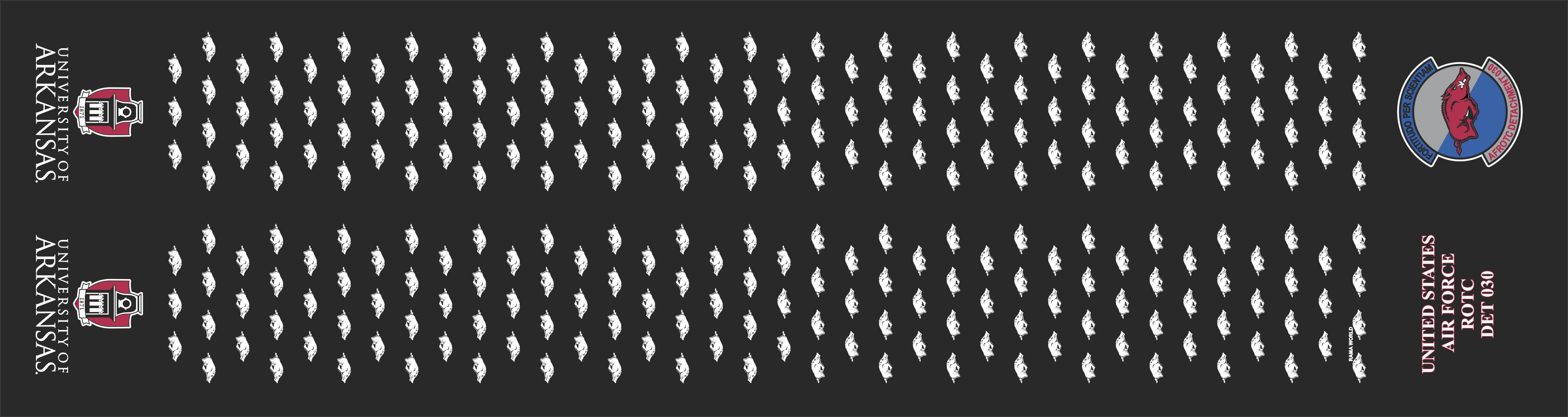 University of Arkansas AFROTC Det 030 Flight Scarf - Black Background, White Boar Logo, Patches and Text on Ends