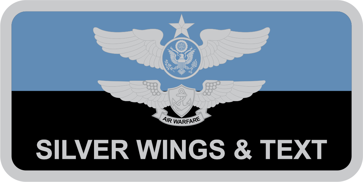 Hancock Field ANGB 174 OSS Name Tag - Split Blue & Black Background, Gray Border, Gray Wings & Text