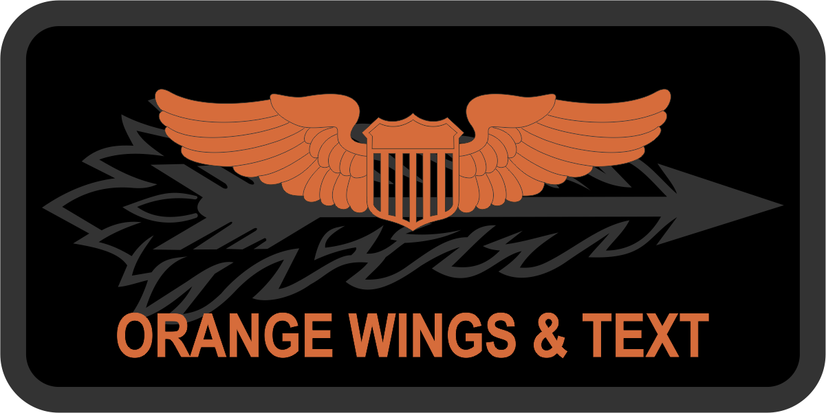Illinois ANG 169 AS - Name Tag- Black Background, Gray Border, Arrow Large in Center of Tag, Orange Wings & Text with Optional Leather Backing - The customer wants RAMA Wings NOT Mardon Wings