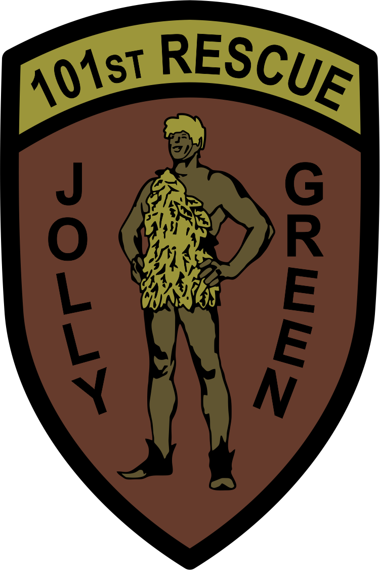 New York ANG 101 RQS Jolly Green Giant Patch - Brown Background, Black Border & Text, Olive & Bagby Giant - OCP  101st Rescue 3.75" with velcro