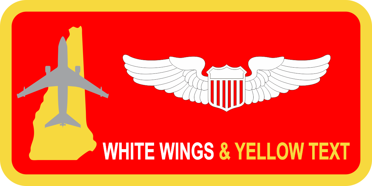TT529 Red Twill, FF523 Yellow Merrow, PF485 Gray Aircraft Logo, PF523 Yellow State Outline, White Wings & PF523 Yellow Text
