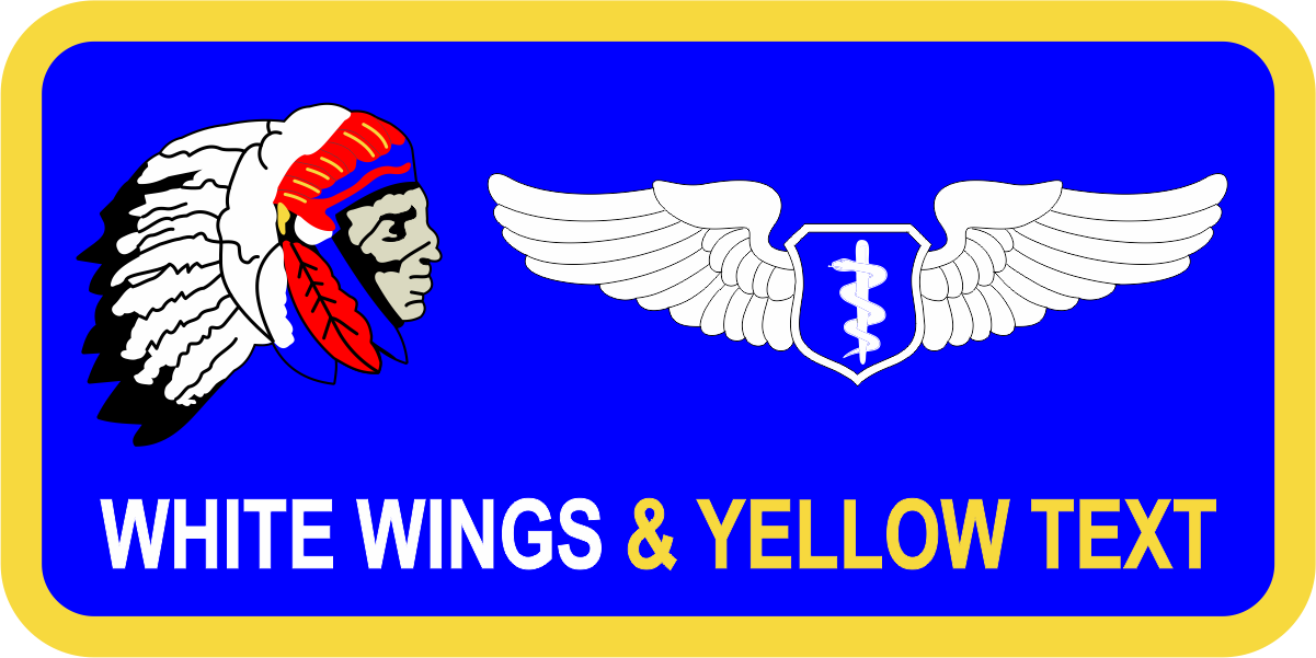 Roland R Wright ANG 151 MDG Name Tag - Blue Background, Yellow Border, White Wing & Yellow Text, White/Blue/Black Indian Chief Head Logo