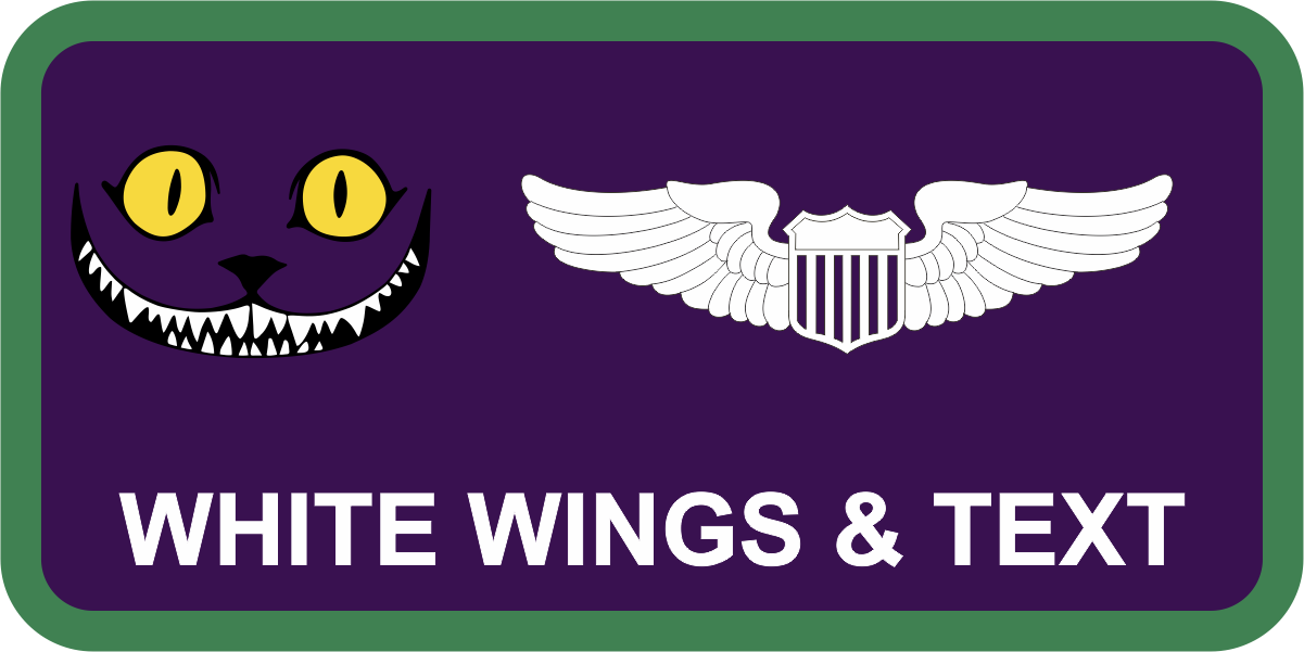 Roland R Wright ANG - SLC AATC Name Tag: Purple Background, Green Border, Teeth with Yellow Eyes, White Wings & Text