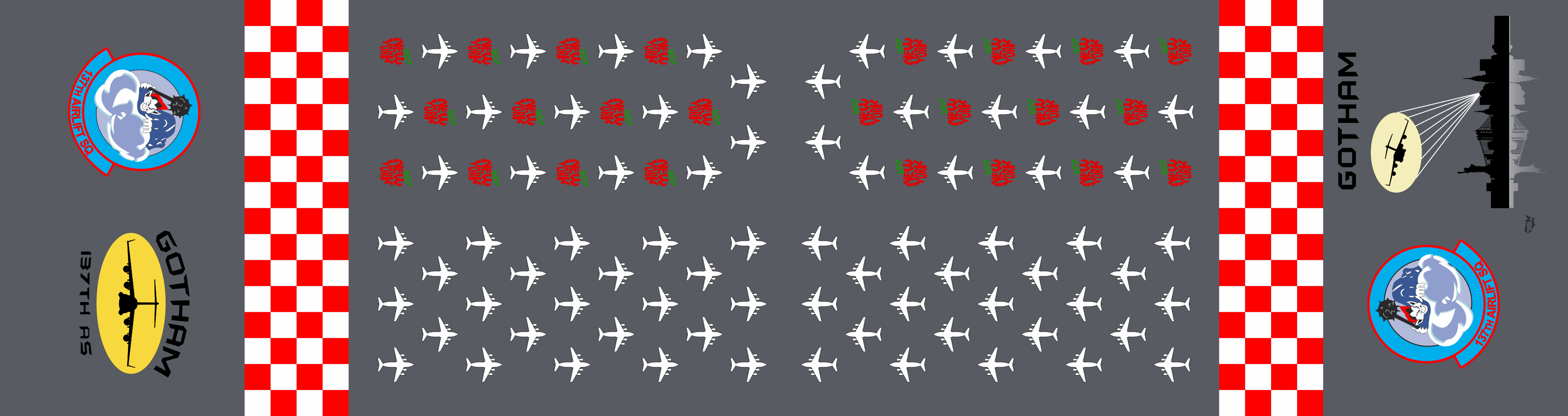 Stewart ANGB 137 AS Flight Scarf. Dark Gray Background With C-17 & "New York" Apple Emblem Pattern, Checker Pattern & SQ Emblems On The Ends Of The Scarf. Size: 6" x 48".