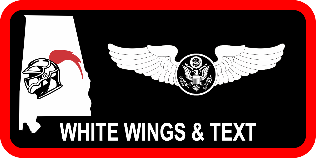 Robins ARB 99 ARS - Knighthead Name Tag Black Background, Red Border, White Wings & Text, White GA State Outline, Black/White Headhead Logo