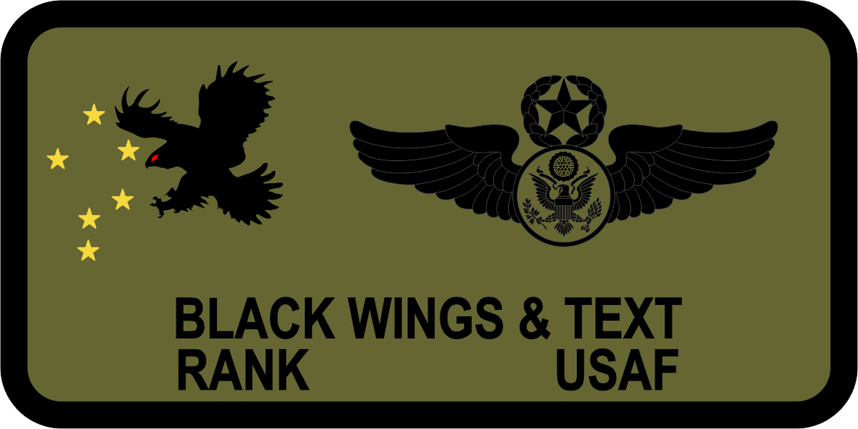 Will Rogers ANG 306 IS Name Tag - Subdued Green Background, Black Border, Black Wings & Text with Black Firebird with Yellow Stars