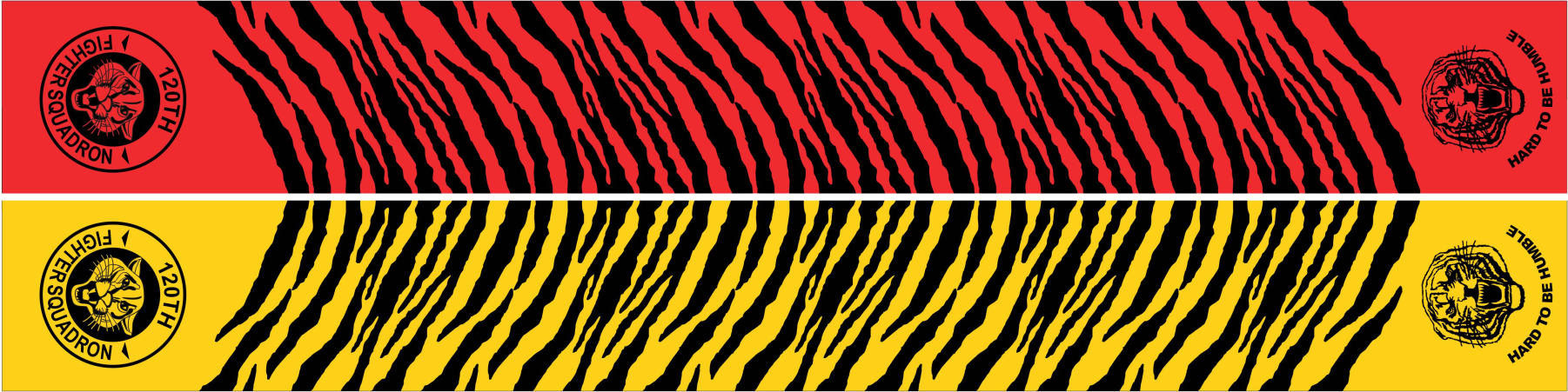 Buckley AFB 120 FS Flight Scarf - Red Side with Black Tiger Stripes, Opposite Side Yellow with Black Tiger Stripes. 5" x 48"