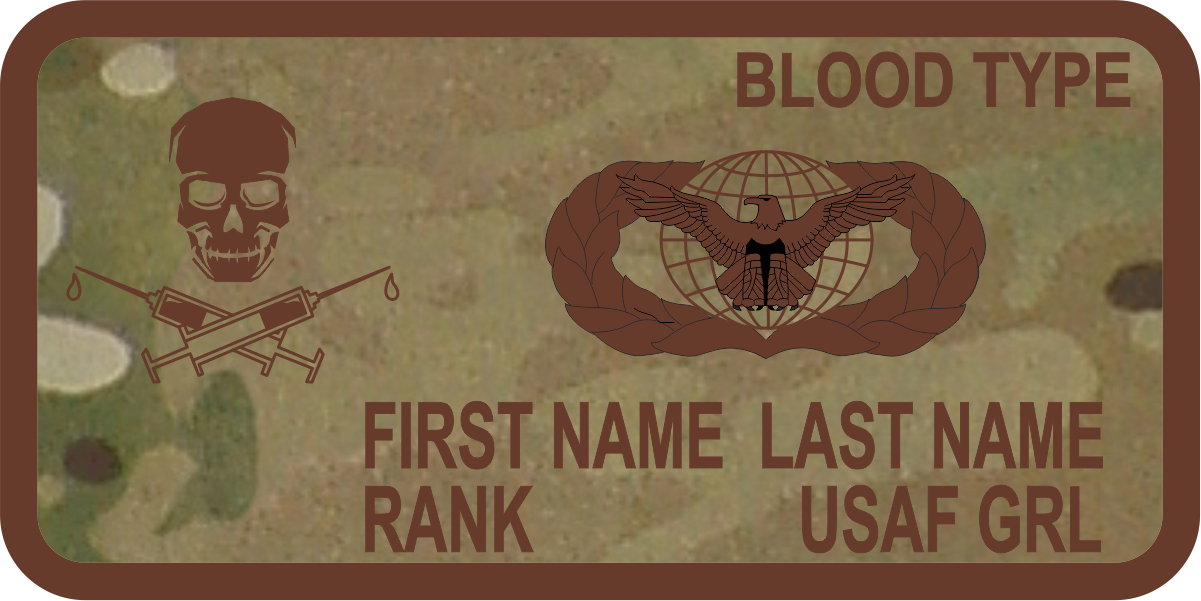 Charleston AFB 628 GRL Skull with Shots Logo Name Tag- OCP Background, Brown Border, Wings & Text with Skull & Shots Logo