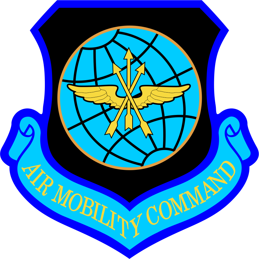 Charleston AFB 15 TCS Heritage AMC Patch - Light Blue Globe & Under Text, Black Background, Yellow Wings, Arrows & Text, 3" with velcro
