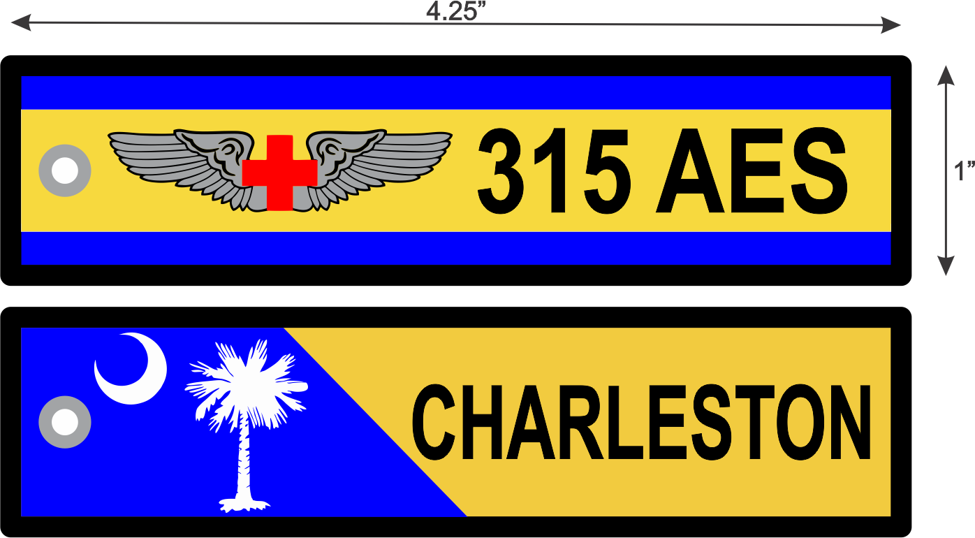 Charleston AFB 315 AES Key Chain 4.25" x 1" Wings with Red Cross, SC Flag Palm Tree with Moon