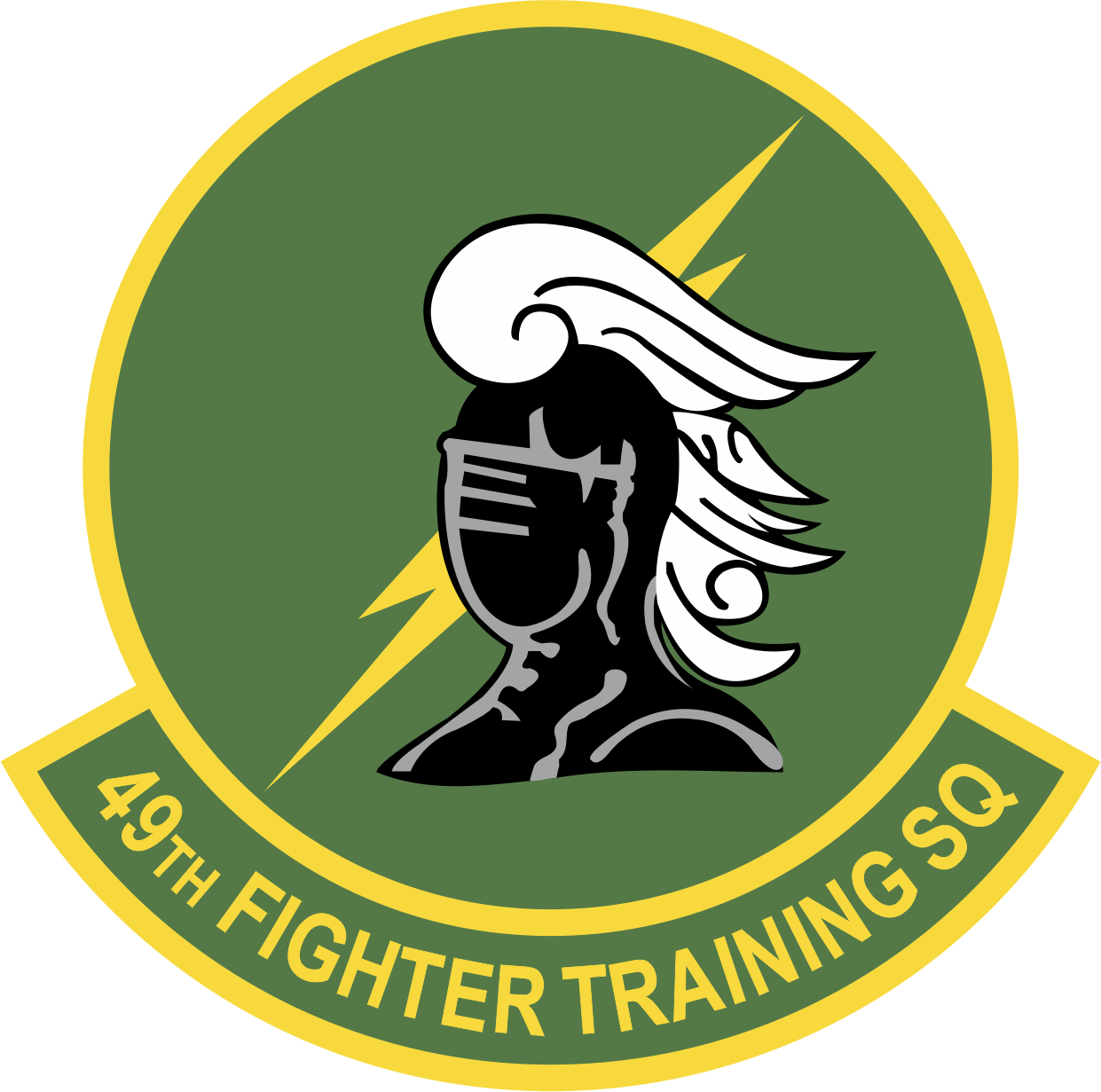 Columbus AFB 49 FTS  Black and Gray Knight, Dark Green Background, Yellow Border & Text 4"