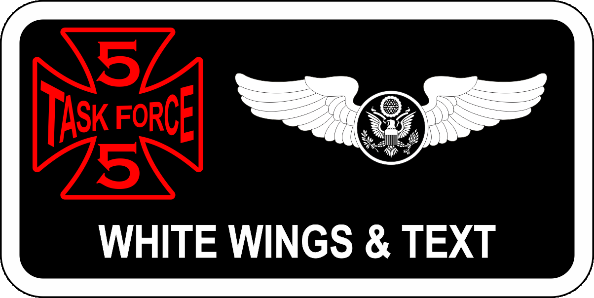 Davis-Monthan AFB - 55 Task Force Name Tag Black Background with White Border with White Text and Wings, Red Cross with 55 Task Force Logo