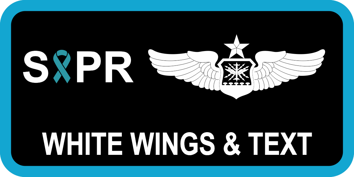 Davis-Monthan AFB 335 WG SARC Name Tag - Black Background, Teal-Blue Border, SPR Logo White Wings & Text