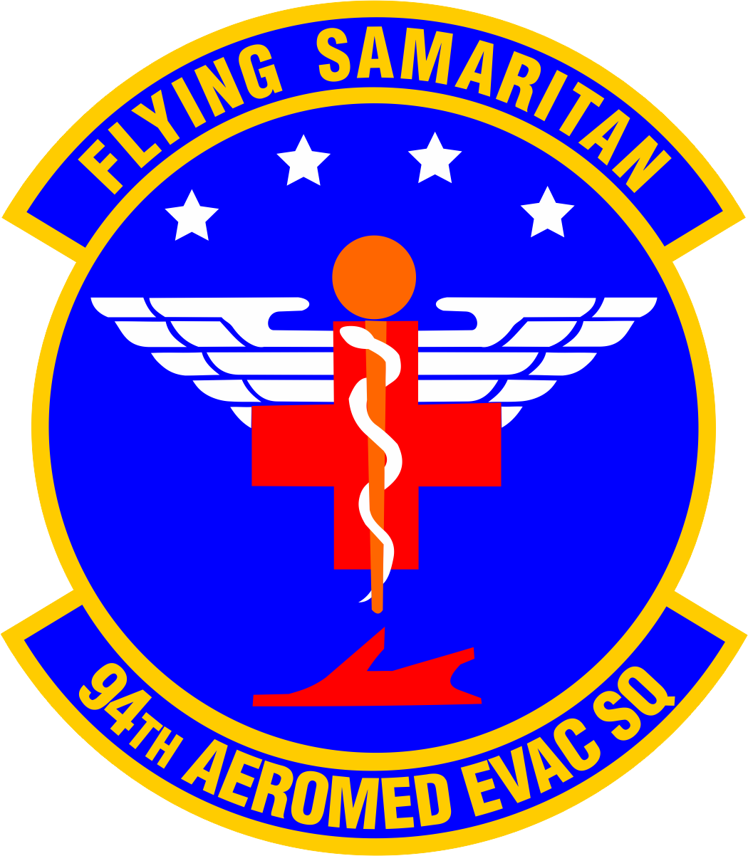 Dobbins AFB 94TH Aeromed Evac Sq Flying Samaritan, Blue Background, White Stars & Wings, Red Cross, Caduceus, Full Color 4" with velcro Patch