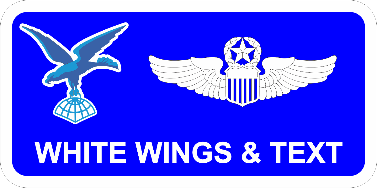 Dover AFB 436 OG Eagle Name Tag - Blue Background, White Border, White Wings & Text, Eagle Two Shades of Blue Clutching Globe, with Optional Leather Backing