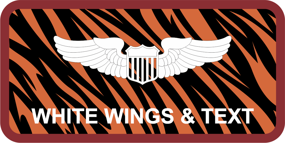 Edwards 418 FLTS Name Tag - Orange & Black Tiger Stripes Background, Maroon Border, White Wings & Text