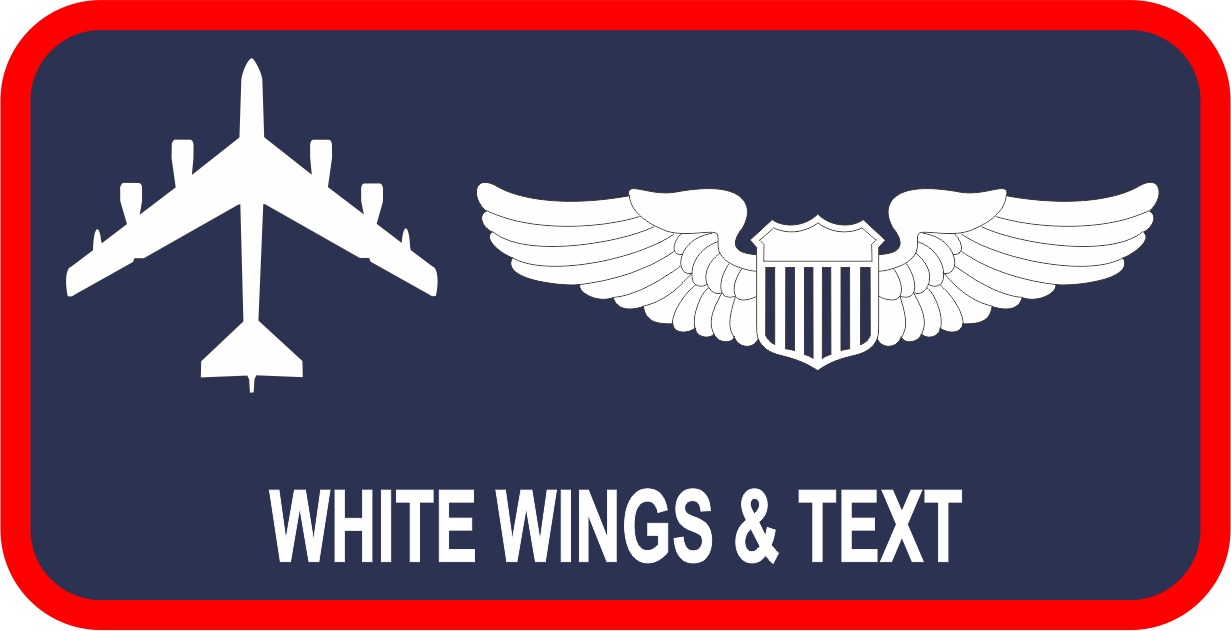 Edwards AFB 419 FLTS Regular Name Tag- Navy Background, Red Border, White Wings & Text, White B-52 Aircraft