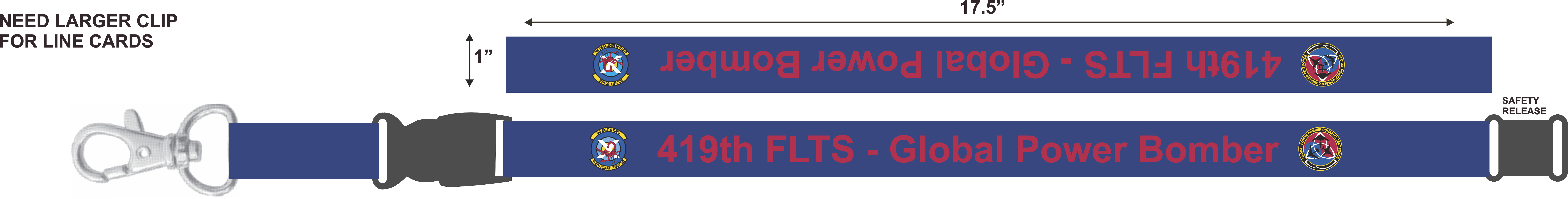 Edwards AFB 419 FLTS Lanyard, Blue Background, 419th FLTS - Global Power Bomber with Patches - with Quick Safety Release