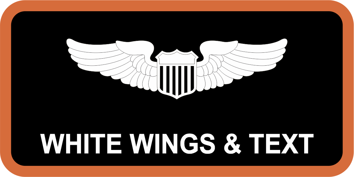 Edwards AFB AFTC Det 1 Name Tag - Black Background, Orange Border Name Tag with White Text and Wings.