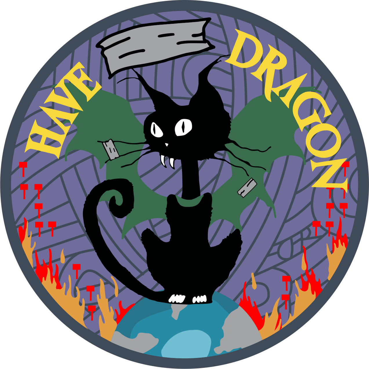 Edwards AFB Test Pilot School-  Have Dragon - Black Cat with Green Bat Wings, with Flames Patch 4" with velcro