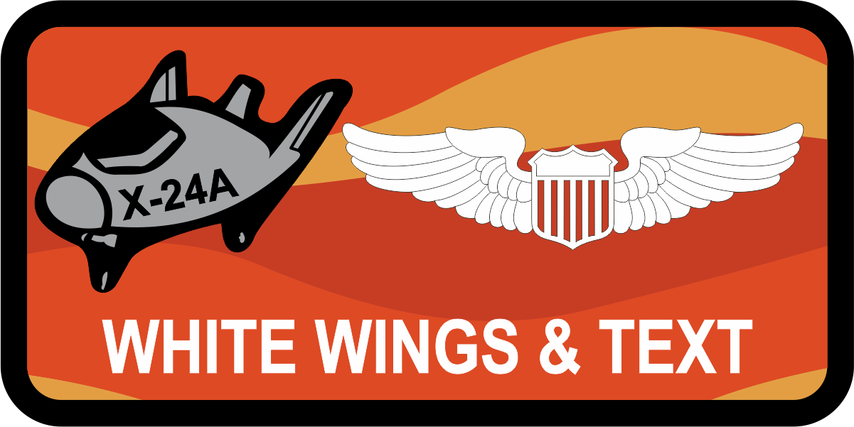 Edwards AFB - Test Pilot School - TPS Class X-24A Name Tag - Orange & Yellow Background with Black Border, White Wings & Text - Gray Aircraft