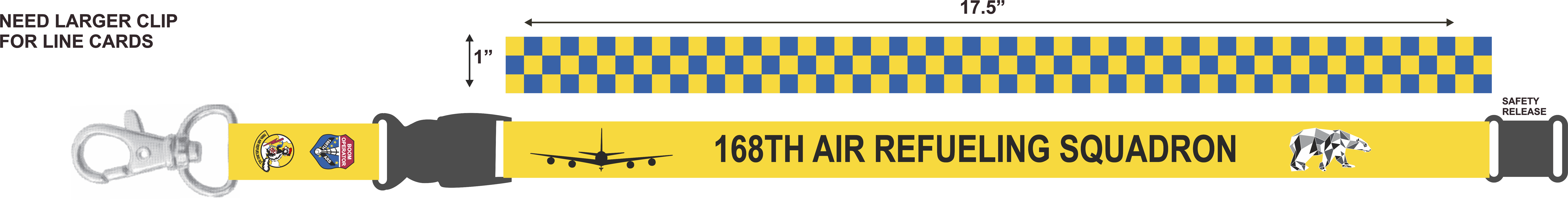 Eielson AFB 168 ARS -  Lanyard - Yellow Background, Black KC-135, Yellow/Blue Checkerboard, Bear Logo & Patch, Lanyard with Safety Release at the Neck