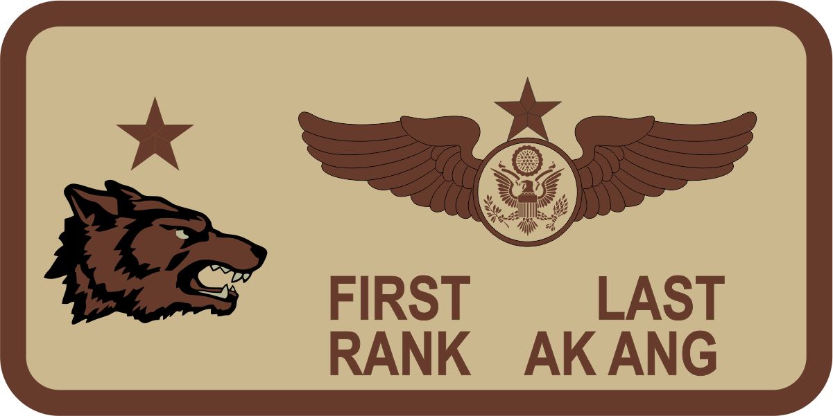 Elmendorf AFB 144 AS Name Tag- Desert Background, Brown Border, Wings & Text with Brown Wolf and Star