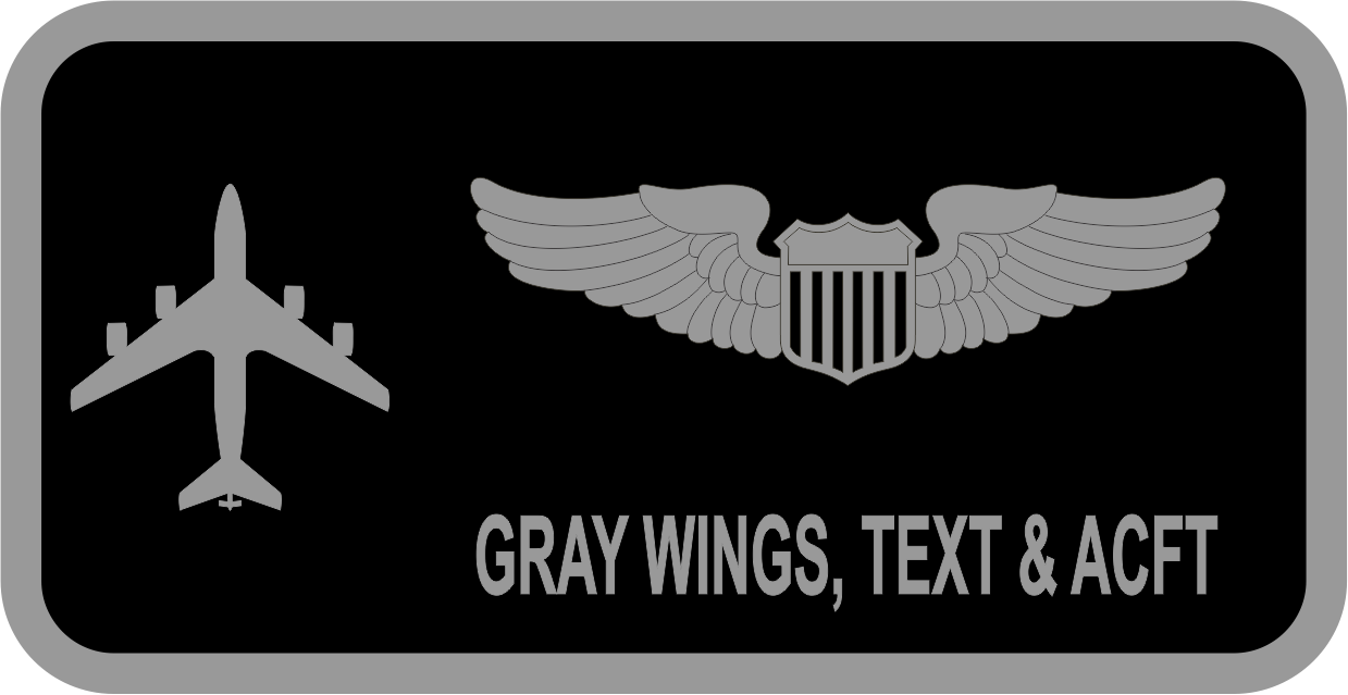 TT-510 Black Twill, FF485 Gray Merrow, PF485 Gray Wings, Text & Aircraft