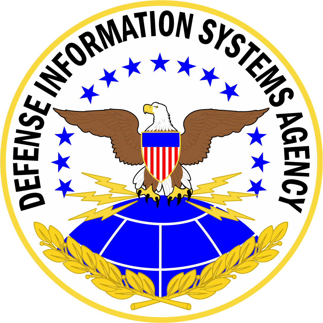 Defense Information Systems Agency (DISA) White Background, Yellow Border, Blue Stars, Brown Eagle, Blue Globe, Yellow Bolts, Full Color Patch 3.5"