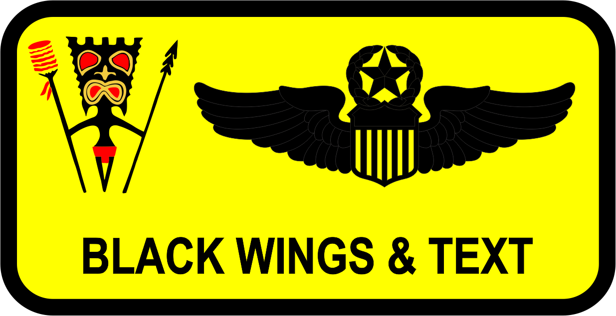 Hickam AFB 154 WG Name Tag - Bright Yellow Background, Black Border, Black/Red/Yellow Tiki Logo, Black Wing & Text