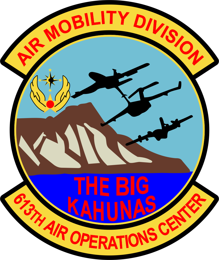 Hickam AFB 613th Air Operations Center Air Mobility Division The Big Kahunas Full Color Patch 3.5"