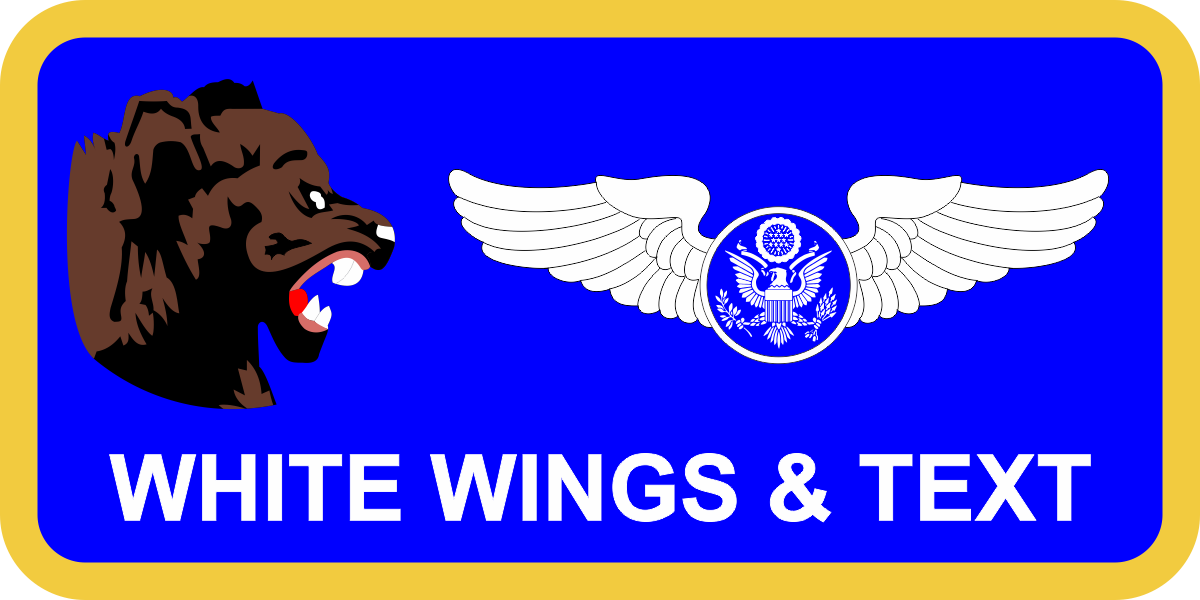 Hickam AFB HQ PACAF IG Name Tag AF Blue Background, AF Yellow Border, White Wings & Text, Brown Bearcat Logo