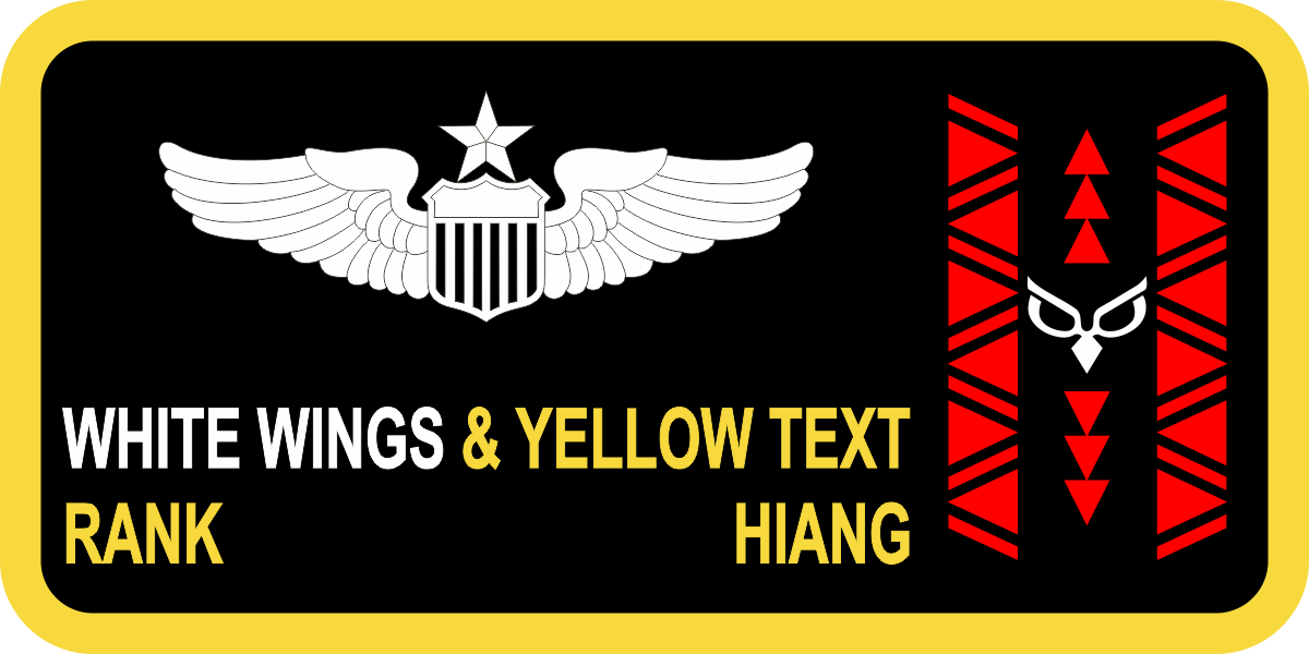 Hickam 204 AS Name Tag - Black background Yellow Border White Wings & Text with Red Logo - Two Lines of Text